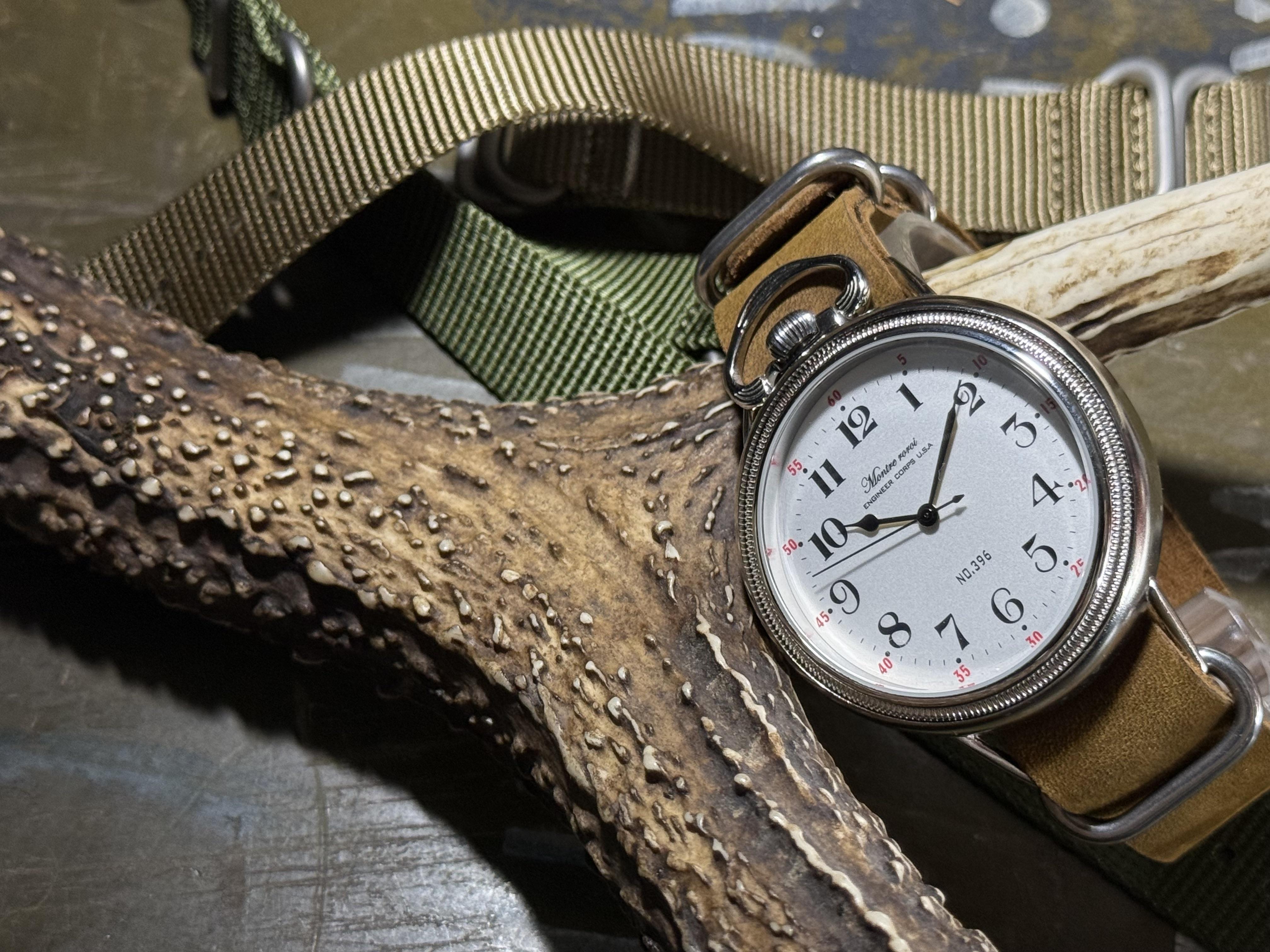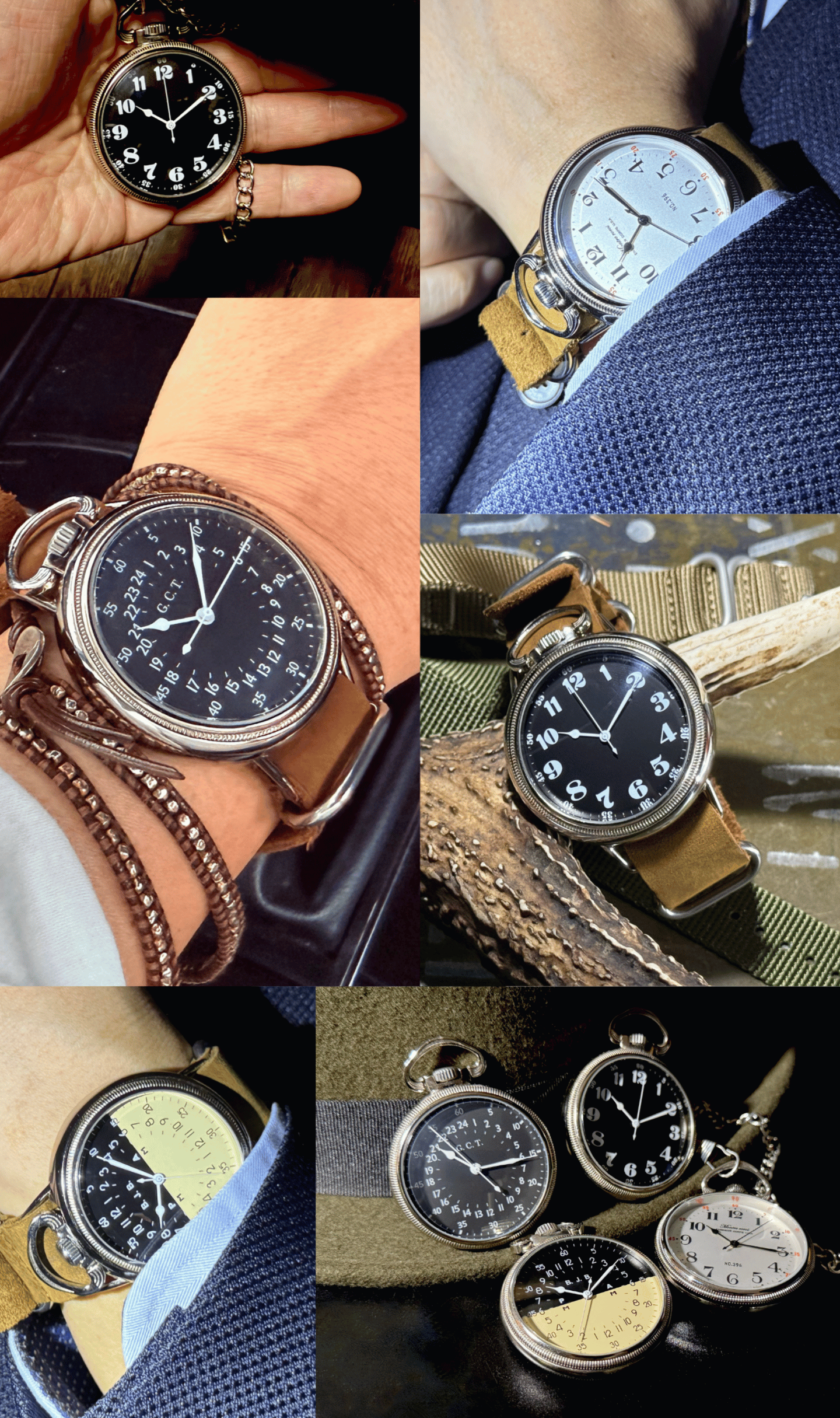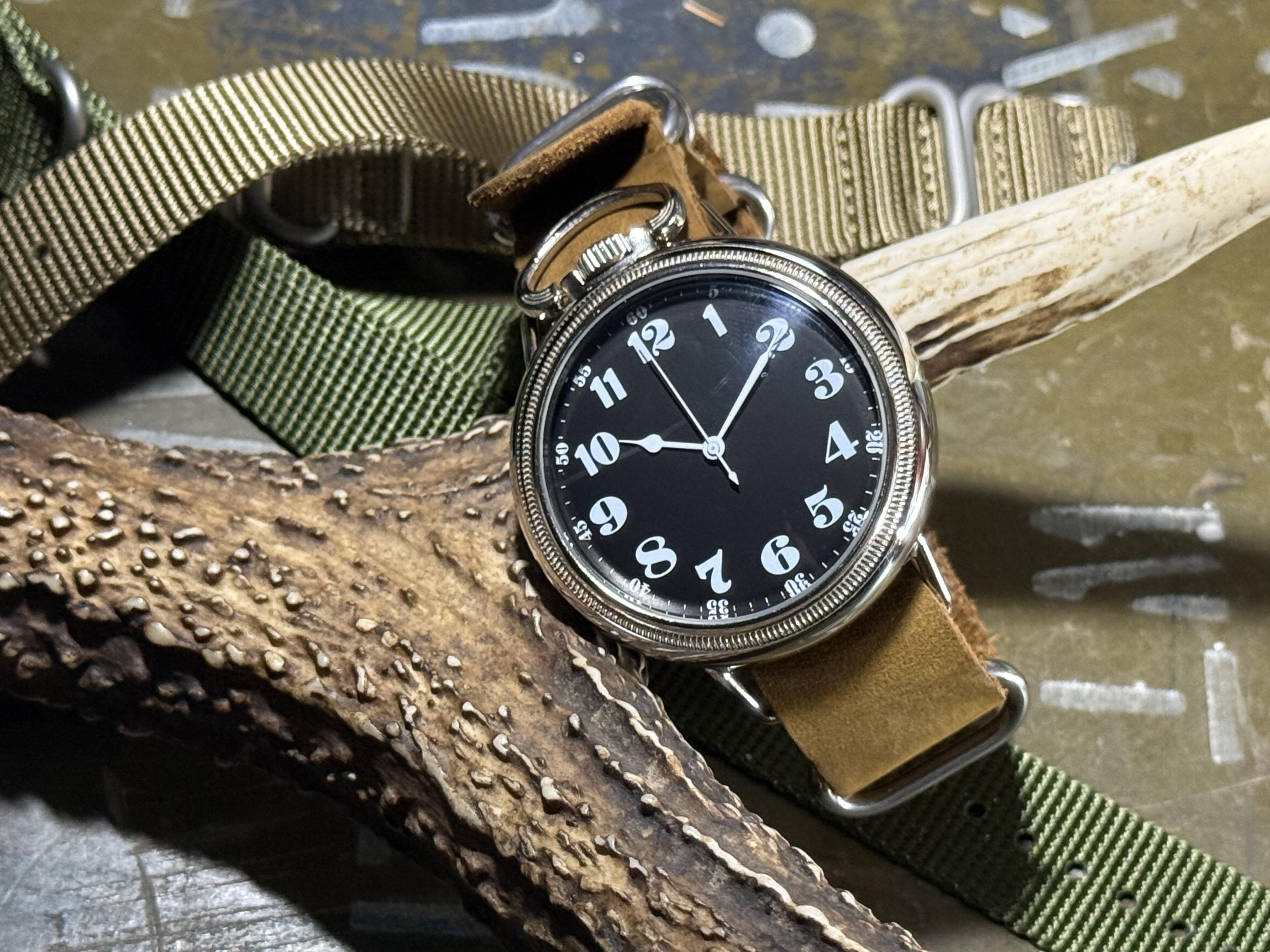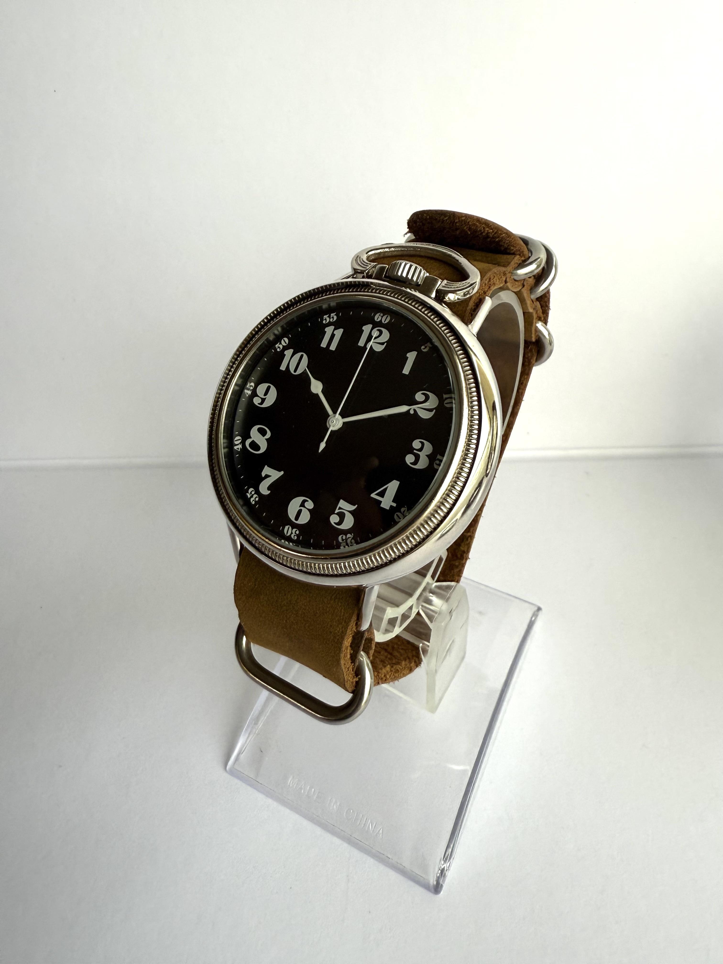 ヴィンテージの軍用懐中時計を忠実に復刻。特殊なカバー(意匠登録済み)を装着することでワイルドな腕時計になります。