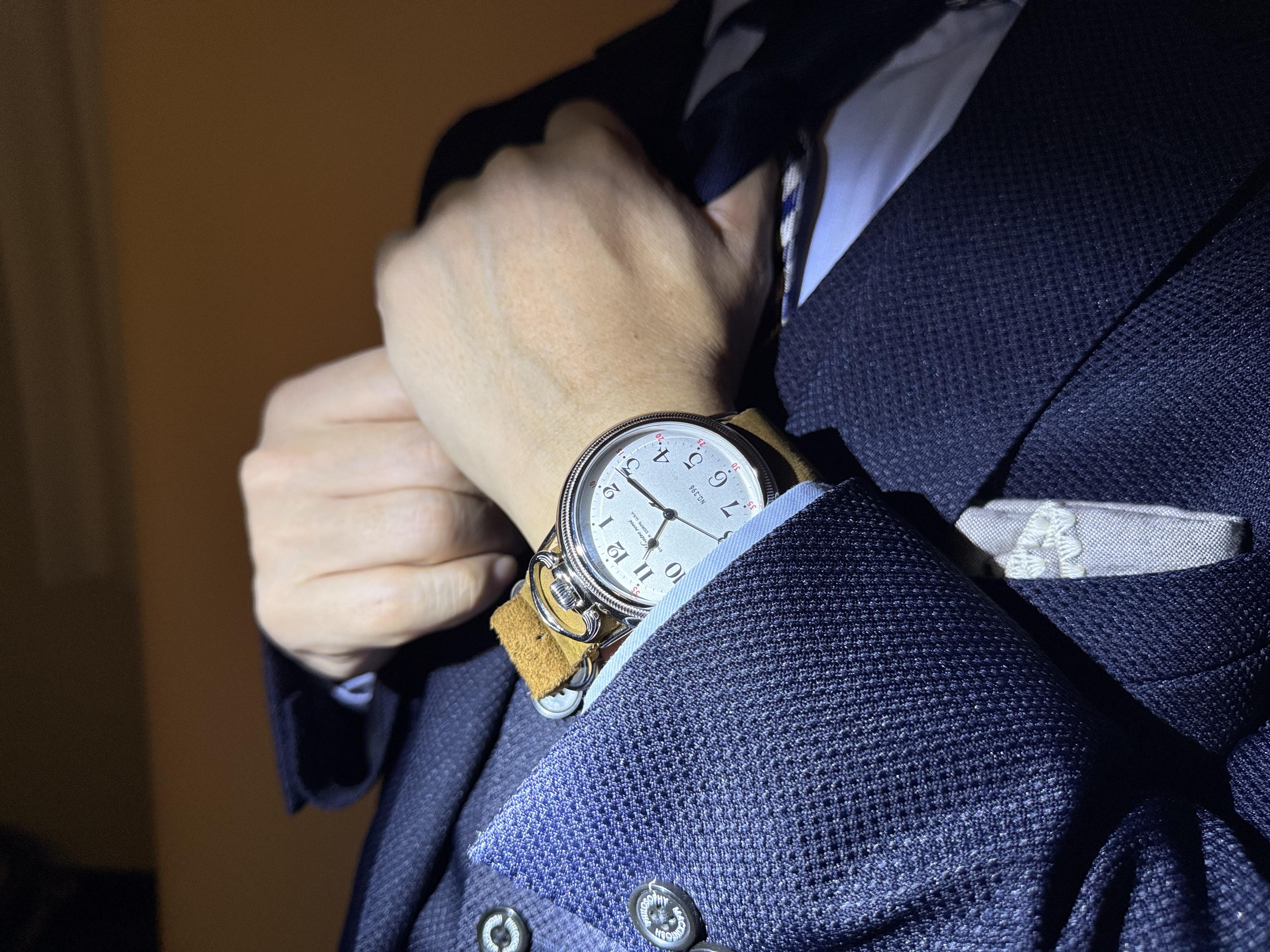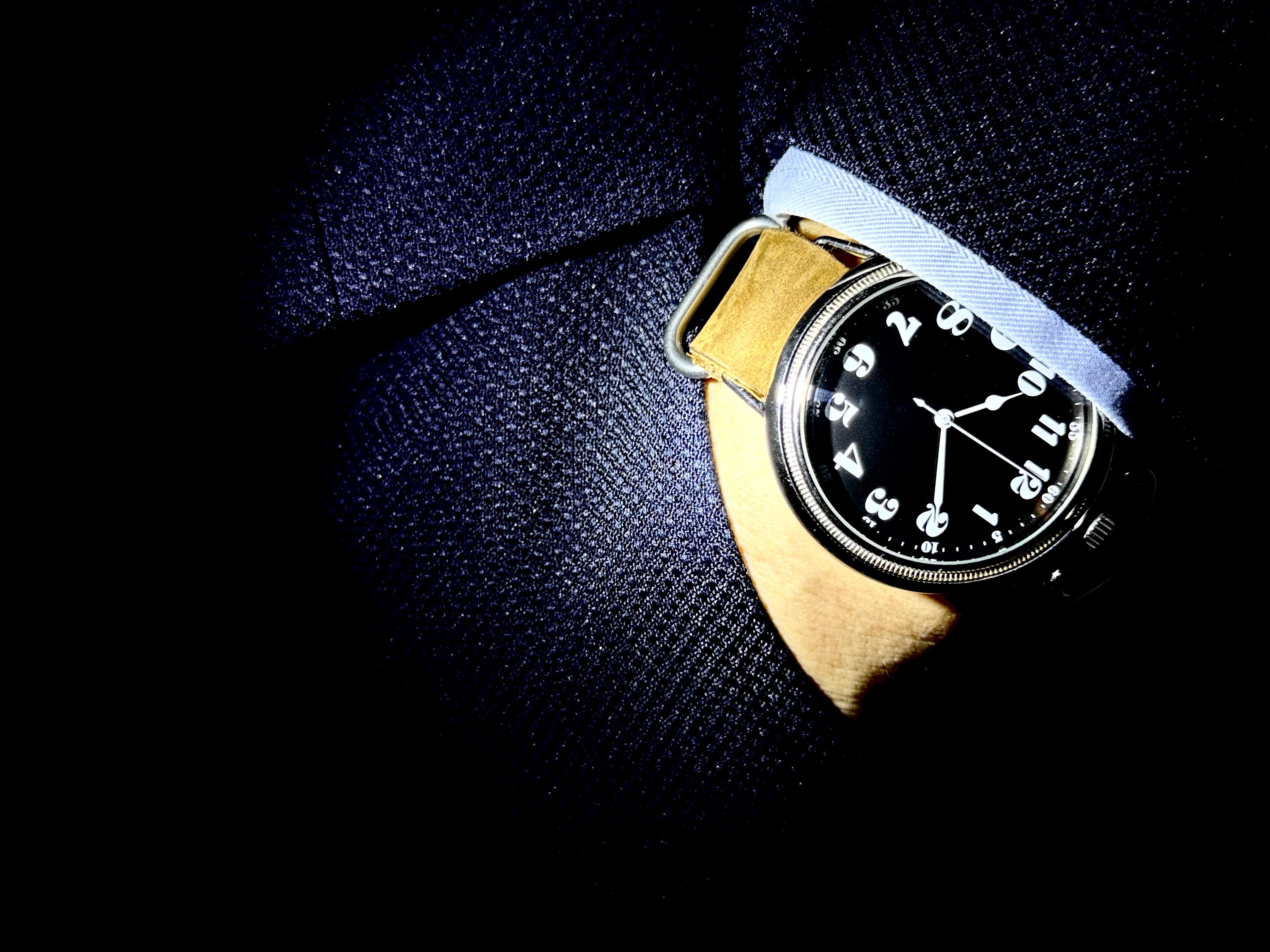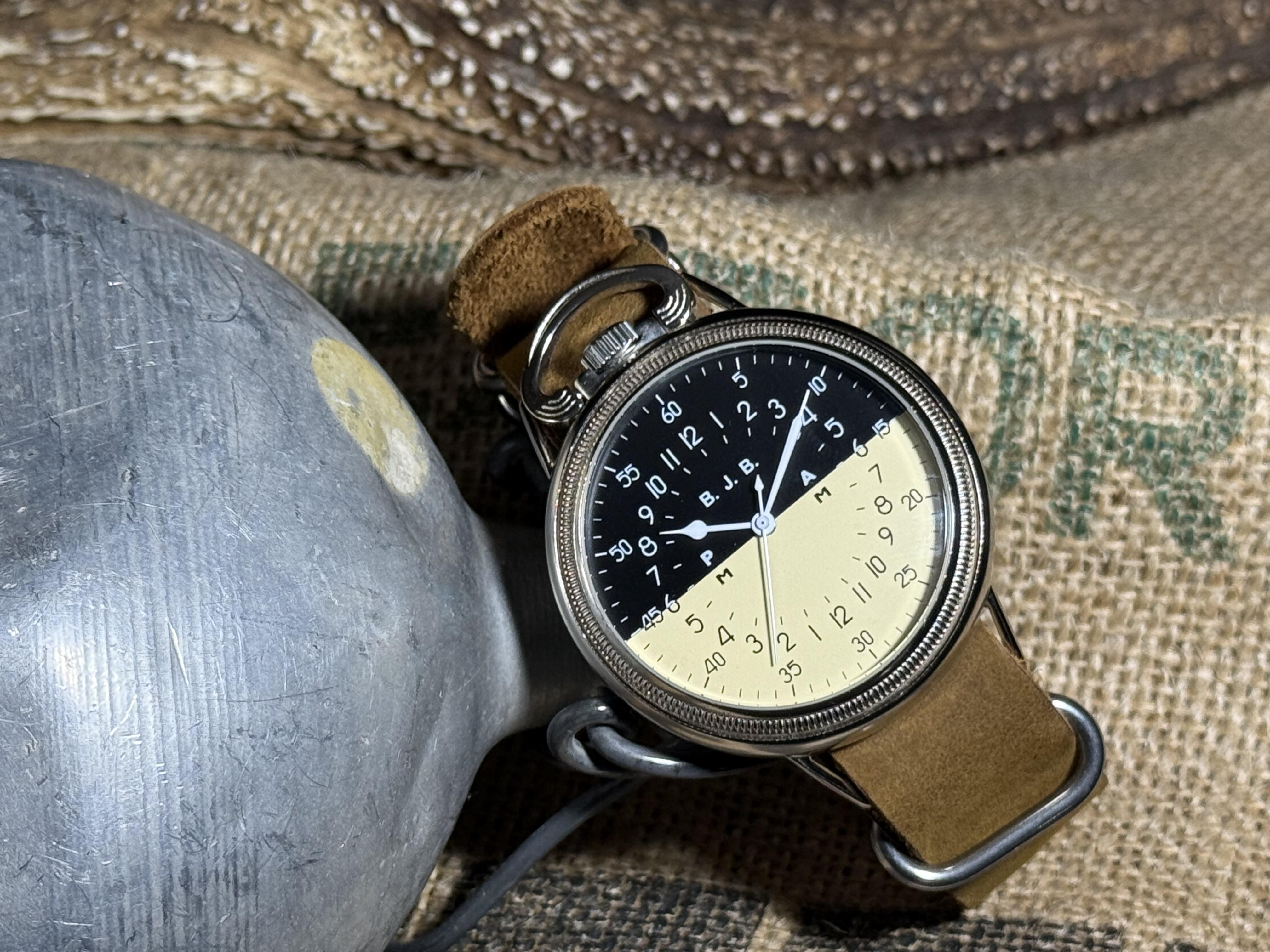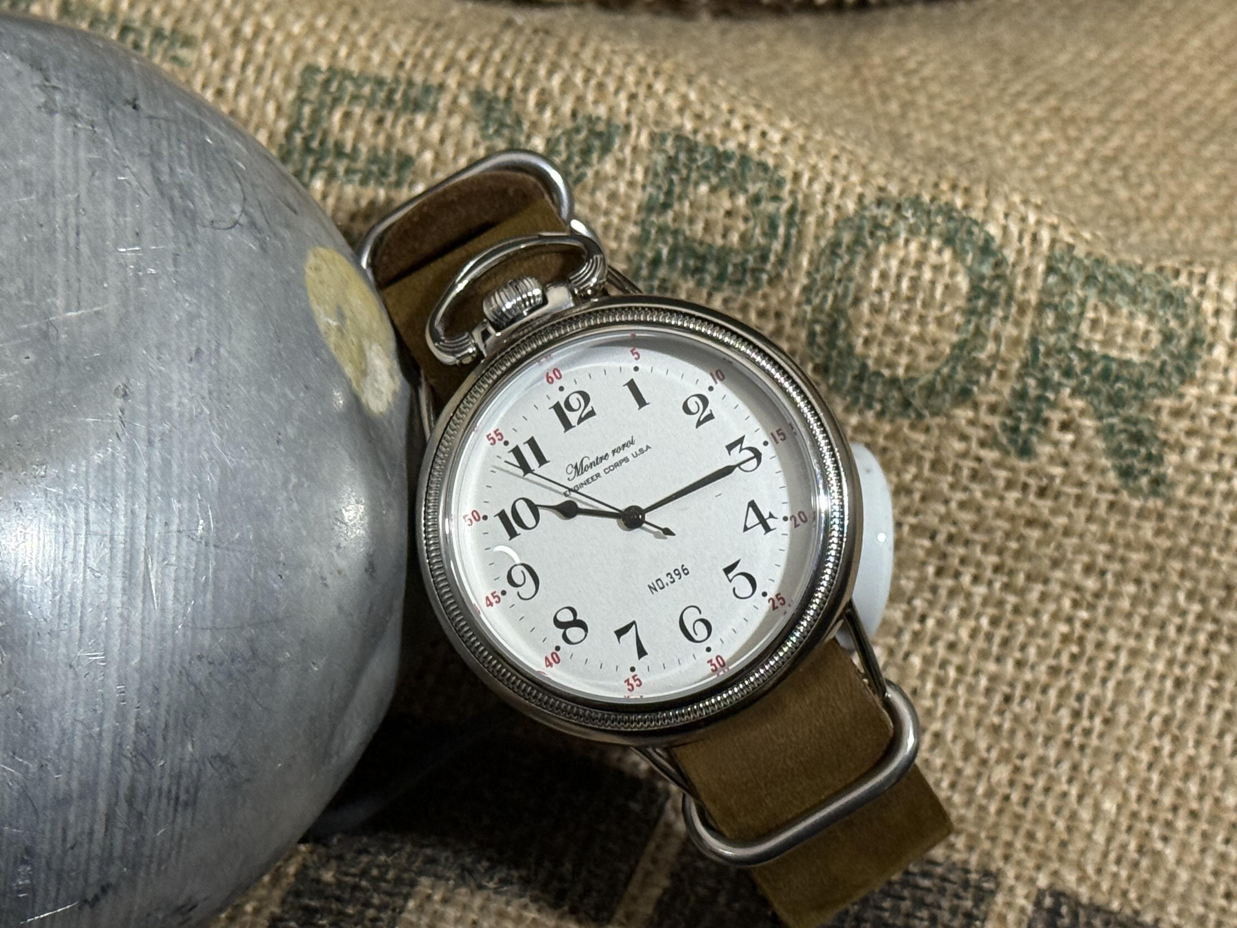 ヴィンテージの軍用懐中時計を忠実に復刻。特殊なカバー(意匠登録済み)を装着することでワイルドな腕時計になります。
