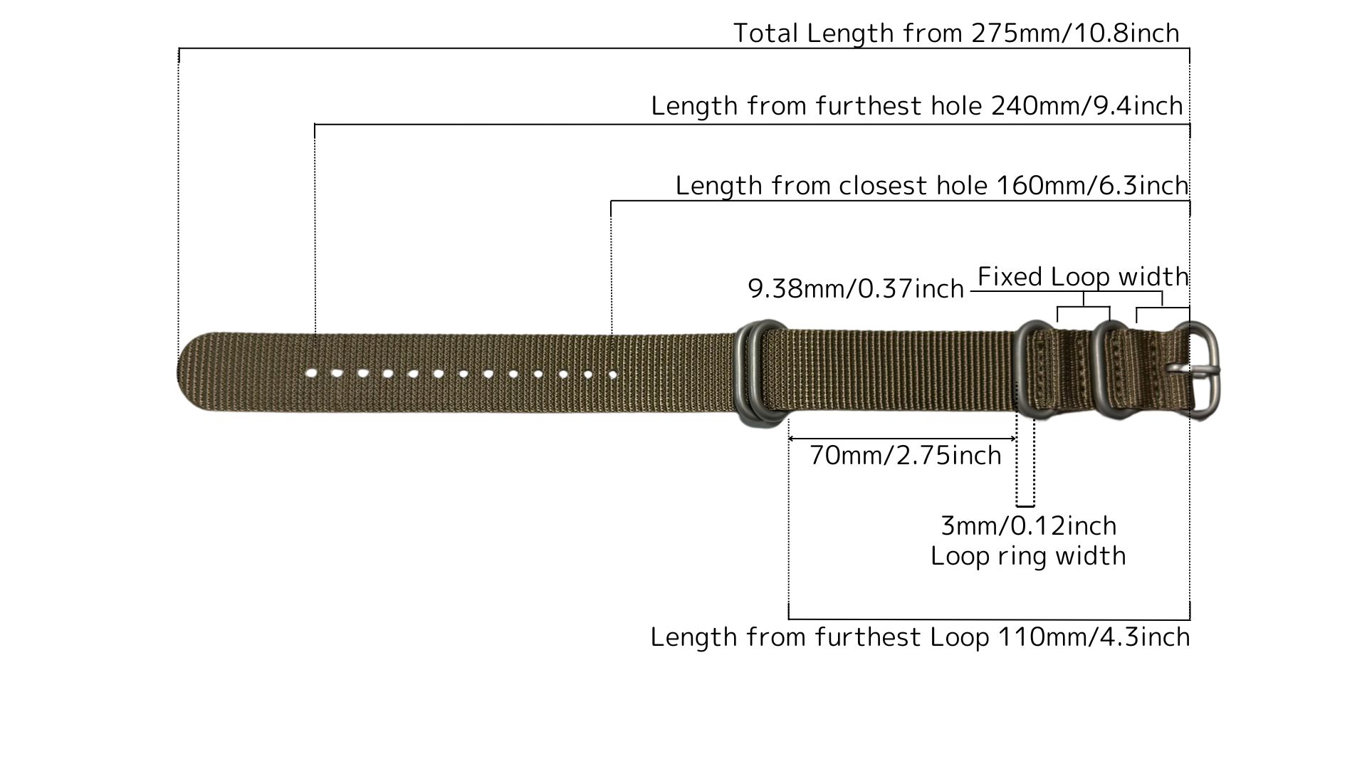このストラップはグログラン生地で、太いナイロン糸に横方向の溝が施されています。厚手で耐久性および、耐水性に優れています。カラーはカーキもしくはグリーンからお選びいただけます。